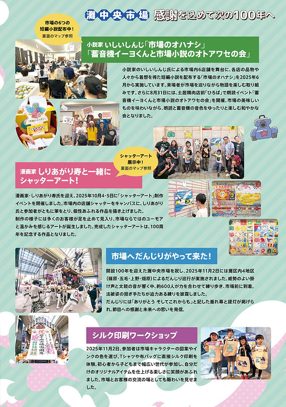 灘中央市場は2025年に開設100周年を迎えました。 その記念事業として、2025年6月から12月にかけて 様々なイベントを開催しました。
